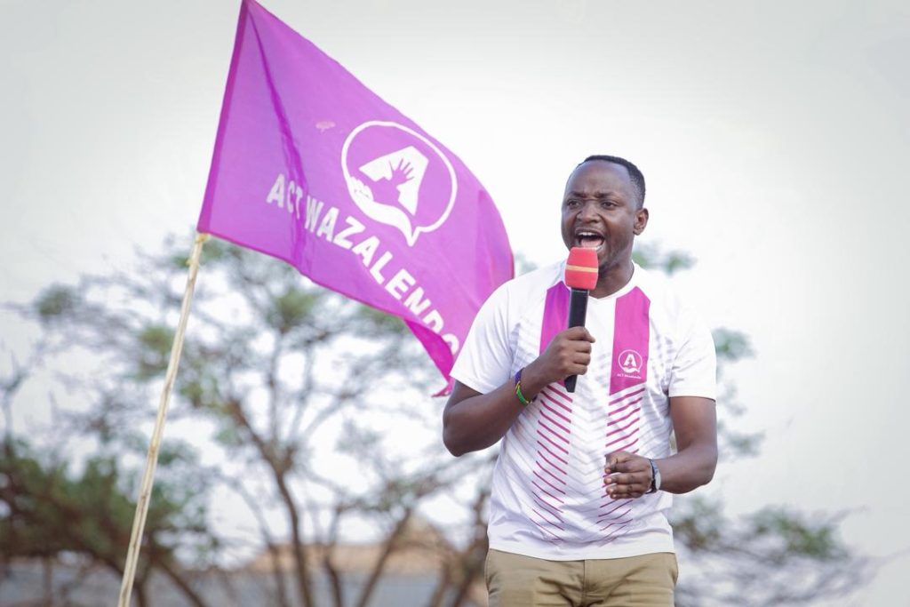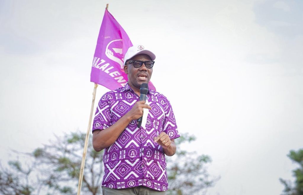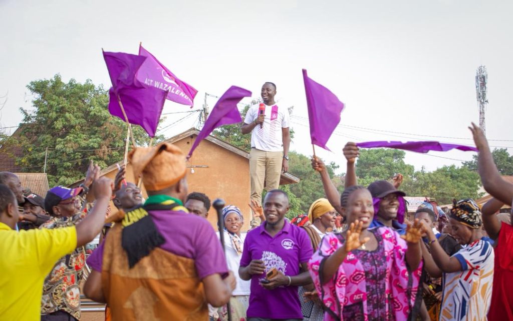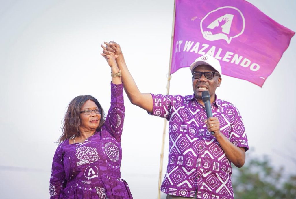 Kiongozi mstaafu wa ACT Wazalendo, Zitto Kabwe akimuombea kura mgombea wa jimbo la Kasulu mjini wa chama hicho, Martina Mturano wakati wa kampeni yake iliyofanyika katika eneo la stendi mpya, Kasulu mmjini, mkoani Kigoma, Oktoba 08, 2025.